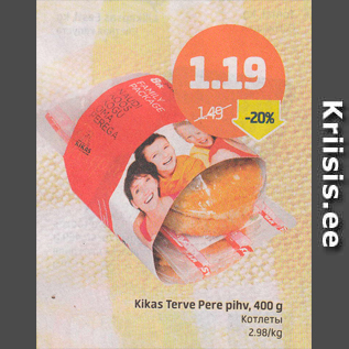 Kampaania periood: 11.07.2016 - 17.07.2016 Hind: 1.19€ Kikas terve Pere pihv, 400 g