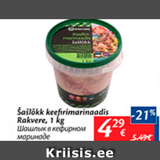 Kampaania periood: 14.07.2016 - 18.07.2016 Hind: 4.29€ Šašlõkk keefirimarinaadis Rakvere, 1 kg