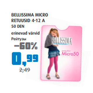 Kampaania periood: 28.07.2016 - 11.09.2016 Hind: 0.99€ BELLISSIMA MICRO RETUUSID 4-12 A 50 DENerinevad värvid