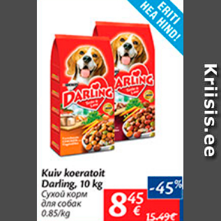 Kampaania periood: 30.08.2016 - 05.09.2016 Hind: 8.45€ Kuiv koeratoit Darling, 10 kg
