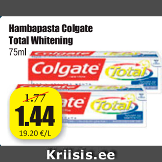 Allahindlus - Hambapasta Colgate Total Whitening 75 ml