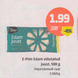 Kampaania periood: 24.10.2016 - 30.10.2016 Hind: 1.99€ E-Piim Edam viilutatud juust, 500 g