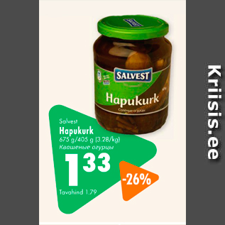 Kampaania periood: 27.10.2016 - 30.11.2016 Hind: 1.33€ Salvest Hapukurk675 g/405 g