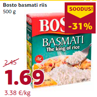 Kampaania periood: 20.12.2016 - 01.01.2017 Hind: 1.69€ Bosto basmati riis 500 g