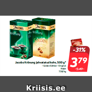 Kampaania periood: 21.02.2017 - 27.02.2017 Hind: 3.79€ Jacobs Krönung jahvatatud kohv, 500 g*• Golden Edition • Original