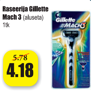 Kampaania periood: 24.03.2017 - 30.03.2017 Hind: 4.18€ Raseerija Gillette Mach3(aluseta) 1 tk