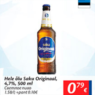 Kaup hele õlu saku originaal oli müügil allahindlusega Maxima poes ajavahemikul 04.04.2017 kuni 10.04.2017 hinnaga 0.79 eurot.