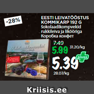 Kampaania periood: 05.04.2017 - 18.04.2017 Hind: 5.39€ EESTI LEIVATÖÖSTUS KOMMIKARP 192 Gšokolaadikompvekid rukkileiva ja likööriga