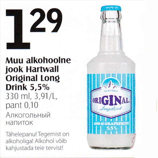 Kaup muu alkohoolne jook hartwall original long drink oli müügil allahindlusega Selveri poes ajavahemikul 09.05.2017 kuni 15.05.2017 hinnaga 1.29 eurot.