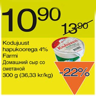 Kampaania periood: 06.01.2010 - 12.01.2010 Kodujuust hapukoorega Farmi4%, 300g