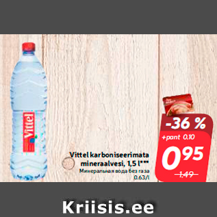 Kampaania periood: 16.05.2017 - 22.05.2017 Hind: 0.95€ Vittel karboniseerimata mineraalvesi, 1,5 l******v.a Viljandi, Viimsi, Magistrali, Mustamäe Keskuse hüpermarketis.