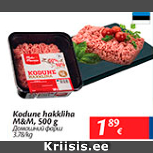 Kampaania periood: 25.05.2017 - 29.05.2017 Hind: 1.89€ Kodune hakkliha M&M, 500 g