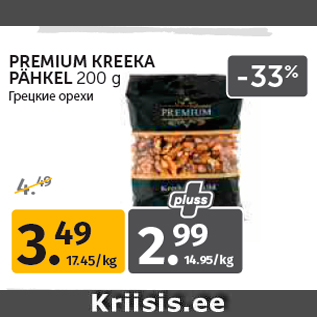 Kampaania periood: 07.06.2017 - 20.06.2017 Hind: 2.99€ PREMIUM KREEKA PÄHKEL 200 g