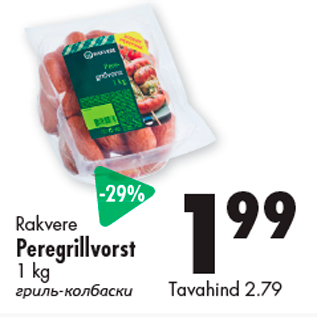 Kampaania periood: 15.06.2017 - 25.06.2017 Hind: 1.99€ Rakvere Peregrillvorst 1 kg