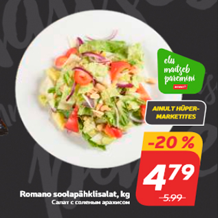 Kampaania periood: 27.06.2017 - 03.07.2017 Hind: 4.79€ Romano soolapähklisalat, kg
