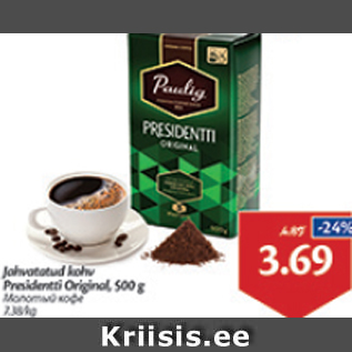 Allahindlus - Jahvatatud kohv Presidentti Orgignal, 500 g