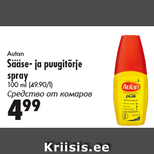 Kampaania periood: 11.07.2017 - 16.07.2017 Hind: 4.99€ Autan Sääse- ja puugitõrje spray100 ml (49.90/l)