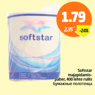 Kampaania periood: 18.07.2017 - 24.07.2017 Hind: 1.79€ Softstar majapidamispaber, 400 lehte rullis