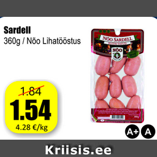 Kampaania periood: 21.07.2017 - 27.07.2017 Hind: 1.54€ Sardell360g / Nõo Lihatööstus