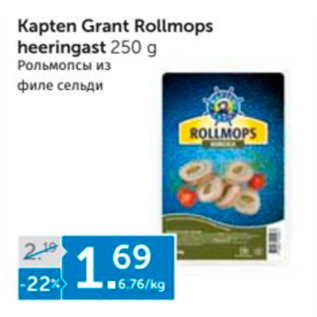 Kampaania periood: 16.08.2017 - 29.08.2017 Hind: 1.69€ Kapten Grant Rollmops heeringast 250 g