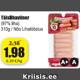 Kampaania periood: 25.08.2017 - 07.09.2017 Hind: 1.98€ Töissuitsuviiner(97% liha) 310 g / Nõo Lihatööstus