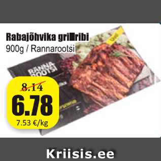 Kampaania periood: 08.09.2017 - 21.09.2017 Hind: 6.78€ Rabajõhvika grillribi900 g / Rannarootsi