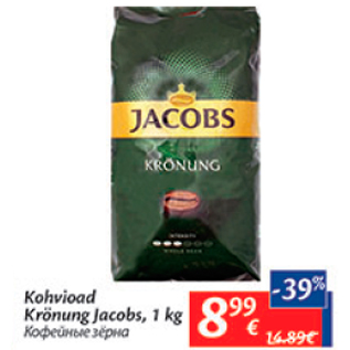 Kampaania periood: 28.09.2017 - 02.10.2017 Hind: 8.99€ Kohvioad Krönung Jacobs, 1 kg