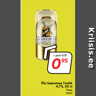 Kaup õlu saaremaa tuulik oli müügil allahindlusega Hüper Rimi ja Rimi poodides ajavahemikul 10.10.2017 kuni 16.10.2017 hinnaga 0.95 eurot.