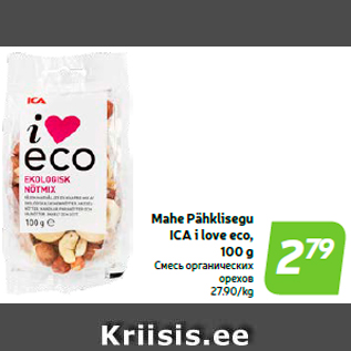 Kampaania periood: 31.10.2017 - 06.11.2017 Hind: 2.79€ Mahe Pähklisegu ICA i love eco, 100 g