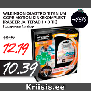 Kampaania periood: 29.11.2017 - 12.12.2017 Hind: 10.39€ WILKINSON QUATTRO TITANIUM CORE MOTION KINKEKOMPLEKT (RASEERIJA, TERAD 1 + 3 TK)