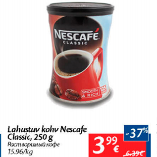 Kampaania periood: 02.01.2018 - 08.01.2018 Hind: 3.99€ Lahuctuv kohv Nescafe Classic, 250 g