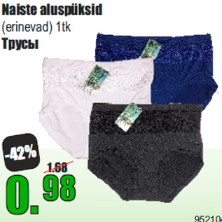 Kampaania periood: 16.04.2018 - 22.04.2018 Hind: 0.98€ Naiste aluspüksid(erinevad) 1tk