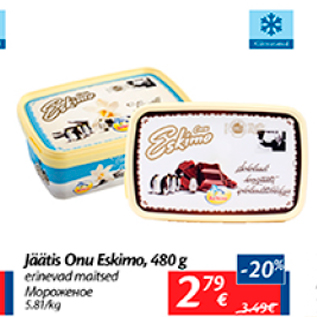 Kampaania periood: 17.04.2018 - 23.04.2018 Hind: 2.79€ Jäätis Onu Eskimo, 480 gerinevad maitsed
