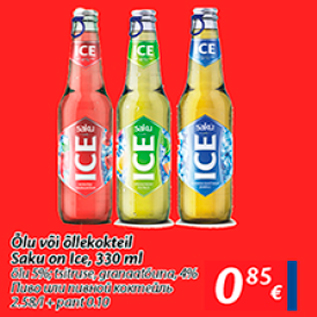 Kaup õlu või õllekokteil saku on ice, 330 ml oli müügil allahindlusega Maxima poes ajavahemikul 08.05.2018 kuni 14.05.2018 hinnaga 0.85 eurot.
