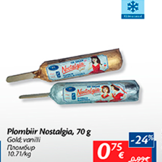 Kampaania periood: 22.05.2018 - 28.05.2018 Hind: 0.75€ Plombir Nostalgia, 70 gGold; vanilli