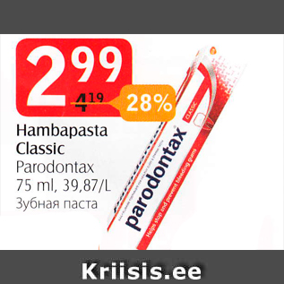 Kampaania periood: 05.06.2018 - 02.07.2018 Hind: 2.99€ Hambapasta ClassicParadontax 75 ml