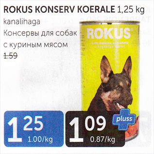 Kampaania periood: 05.06.2018 - 11.06.2018 Hind: 1.09€ ROKUS KONSERV KOERALE 1,25 KGkanalihaga