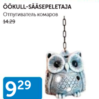 Toode öökull-sääsepeletaja oli müügil allahindlusega Maksimarketi poes ajavahemikul 12.06.2018 kuni 25.06.2018 hinnaga 9.29 eurot.
