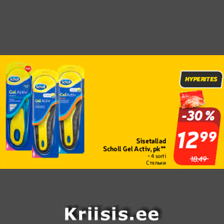 Kampaania periood: 12.06.2018 - 18.06.2018 Hind: 12.99€ Sisetallad Scholl Gel Activ, pk**• 4 sorti