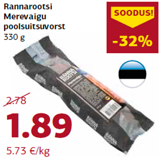 Kampaania periood: 21.06.2018 - 01.07.2018 Hind: 1.89€ Rannarootsi Merevaigu poolsuitsuvorst 330 g