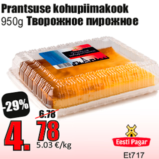 Kampaania periood: 06.07.2018 - 08.07.2018 Hind: 4.78€ Prantsuse kohupiimakook 950g