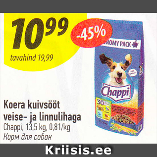 Kampaania periood: 06.07.2018 Hind: 10.99€ Koera kuivsööt veise- ja linnulihagaChappi, 13,5 kg