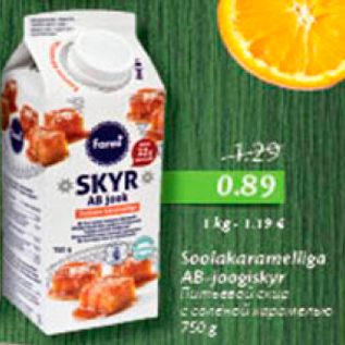 Kampaania periood: 05.07.2018 - 18.07.2018 Hind: 0.89€ Soolakaramelliga AB joogiskyr 750 g