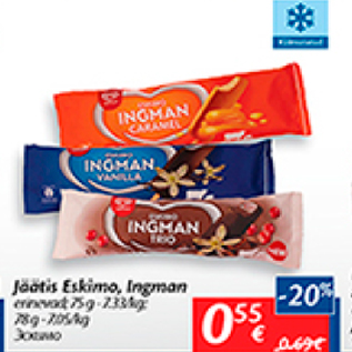 Kampaania periood: 17.07.2018 - 23.07.2018 Hind: 0.55€ Jäätis Eskimo, Ingmanerinevad, 75 g,78 g