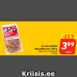 Kampaania periood: 07.08.2018 - 13.08.2018 Hind: 3.99€ Gruusia šašlõkk Maks&Moorits, 800 g