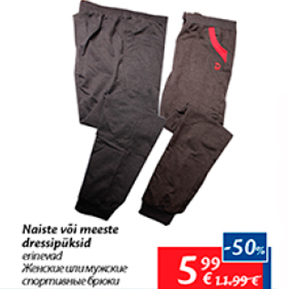 Kampaania periood: 04.09.2018 - 10.09.2018 Hind: 5.99€ naiste või meeste dressipüksiderinevad