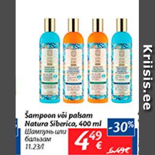 Kampaania periood: 04.09.2018 - 10.09.2018 Hind: 4.49€ Šampoon või palsam Natura Siberica, 400 ml