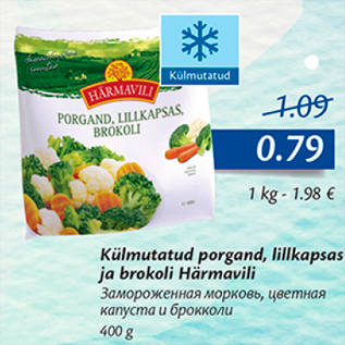 Kampaania periood: 06.09.2018 - 19.09.2018 Hind: 0.79€ Külmutatud porgand, lillkapsas ja brokoli Härmavili 400 g