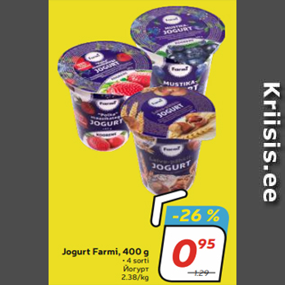 Kampaania periood: 09.10.2018 - 15.10.2018 Hind: 0.95€ Jogurt Farmi, 400 g