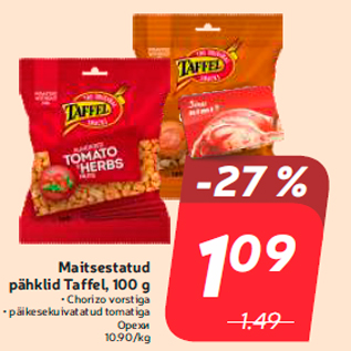 Kampaania periood: 16.10.2018 - 22.10.2018 Hind: 1.09€ Maitsestatud pähklid Taffel, 100 g• Chorizo vorstiga